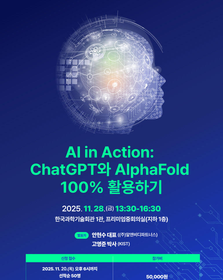 ‘AI in Action: ChatGPT와 AlphaFold 100% 활용하기’ 세미나 개최 안내