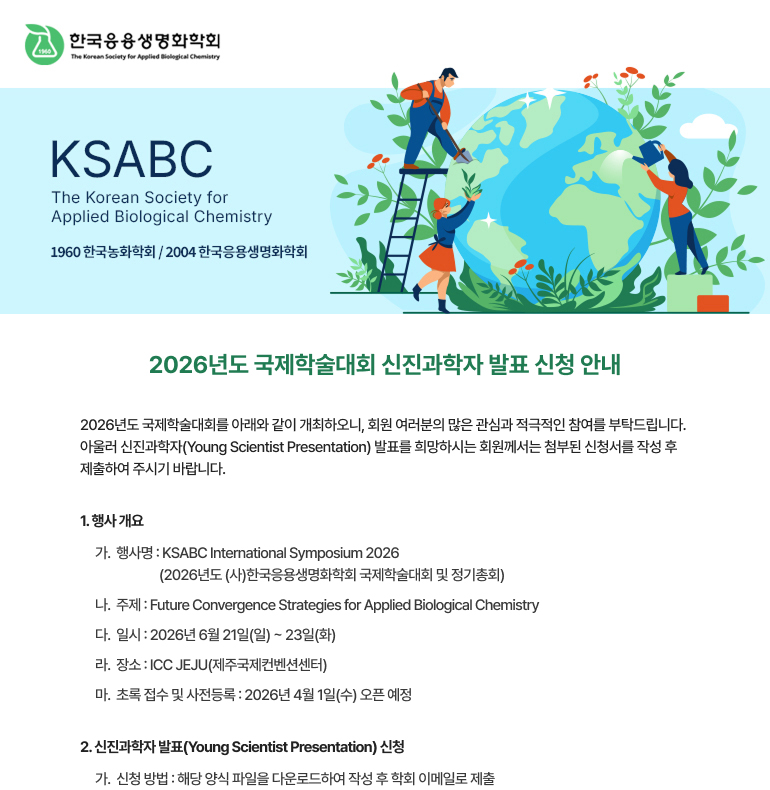 2026년도 국제학술대회 신진과학자 발표 신청 안내